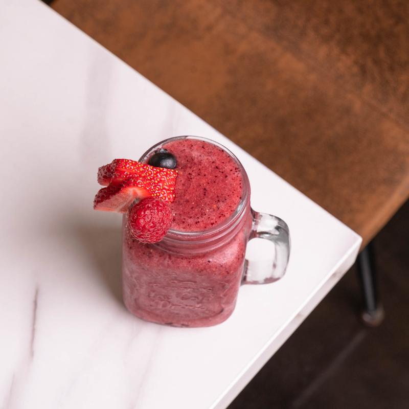 A refreshing blend of macerated blueberries, smooth matcha, and cold milk poured over ice. Light, fruity, and perfectly balanced.