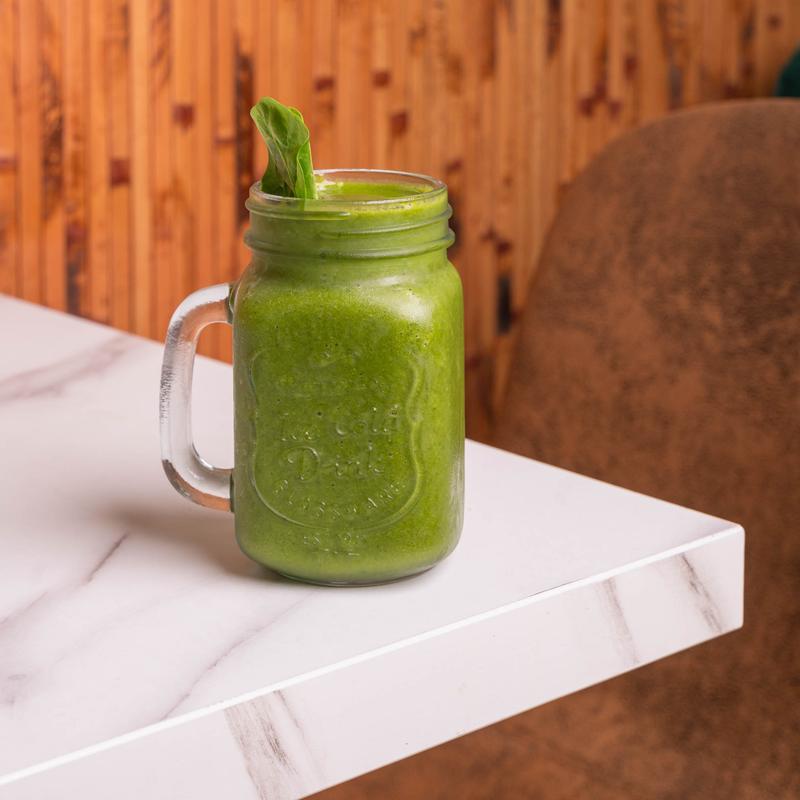 Banana, spinach, ginger, apple juice.
