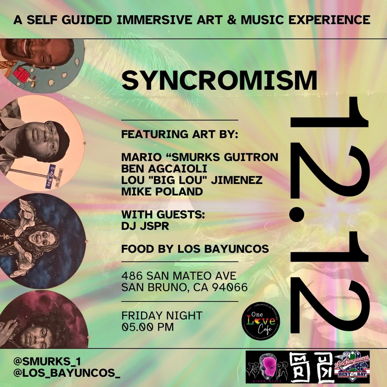 Prepare your senses for an unforgettable night as Mario “Smurks” Guitron brings his creative vision to life with SYNCHROMISM — an immersive art and music experience unlike anything San Bruno has ever seen.